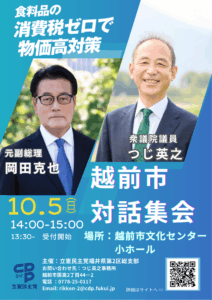 岡田克也立憲民主党元副総理をお迎えして、敦賀市でも対話集会を行います。